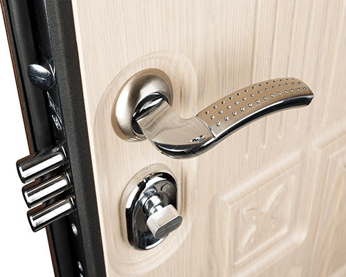 Установлены: цилиндровый замок "STADT", сувальдный замок "STADT", ночная задвижка, броненакладка, эксцентрик, ручки и глазок.
